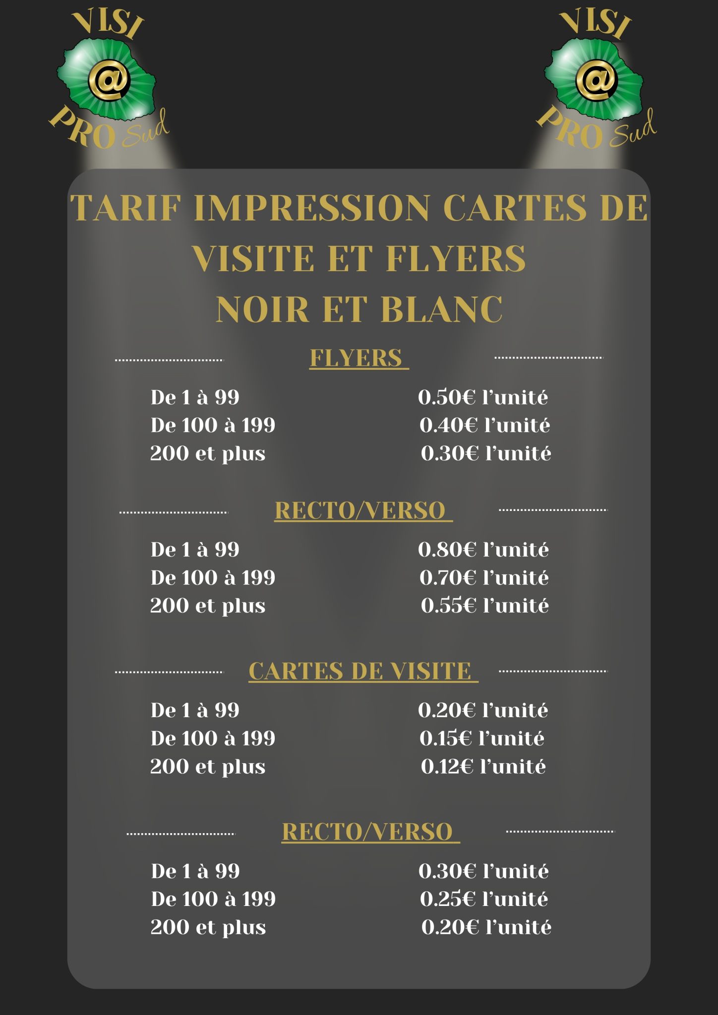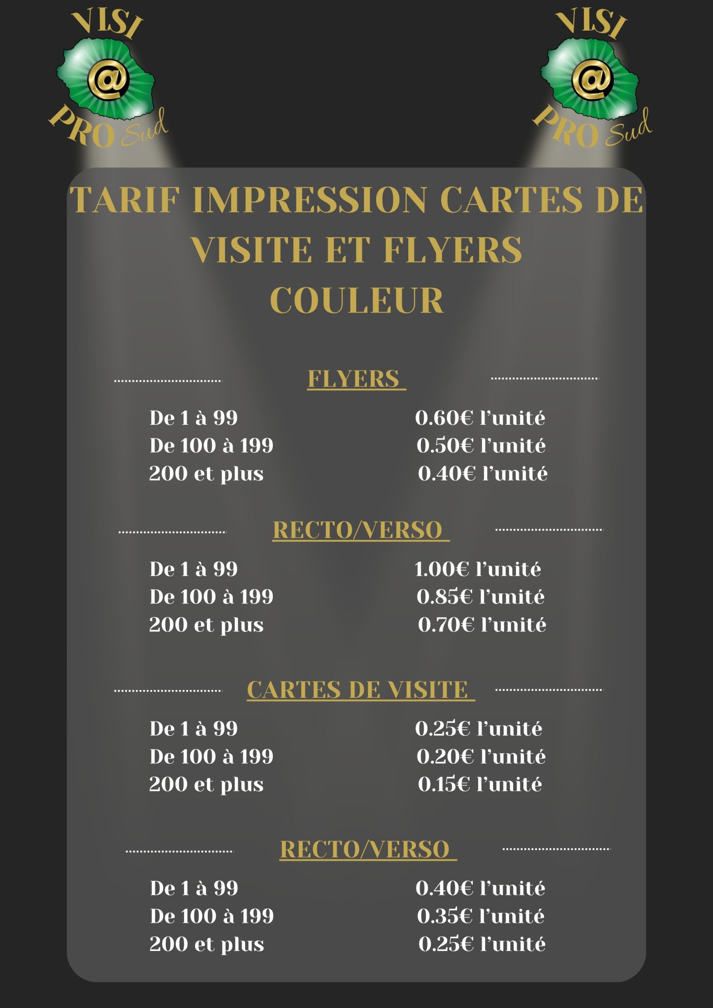Nous vous proposons également l’impression de vos Flyers et Cartes de visite en haute résolution à des tarifs dégressifs n’incluant pas la conception des maquettes.