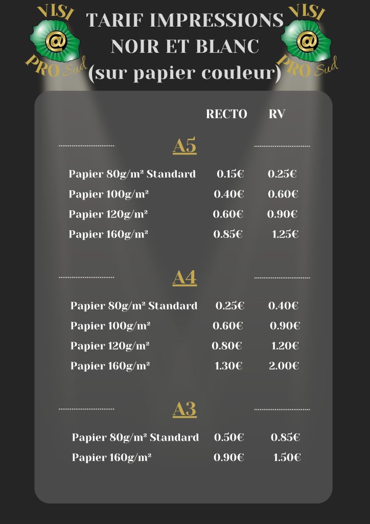 Papier 160g/m² 2.50€ 3.50€